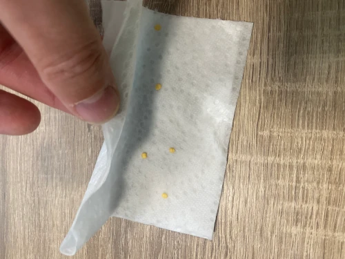 Vervolgens dient de keukenrol in een boterhamzakje of een gripzakje te worden gedaan. Laat hierbij een opening vrij van enkele cm voor ventilatie.