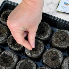 Plaats de tabletten rechtop, dat wil zeggen de kant zonder netje naar boven. Hierna flink water toevoegen, waardoor de tabletten in enkele minuten zullen uitzetten tot een hoogte van ongeveer 5 cm. Eenmaal gehydrateerd, plaats je het zaadje bovenin (ongeveer 5 mm diep), en zorg dat je het weer bedekt.